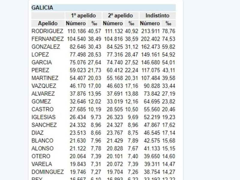 Según el Instituto Galego de Estadística el apellido más repetido es Rodríguez