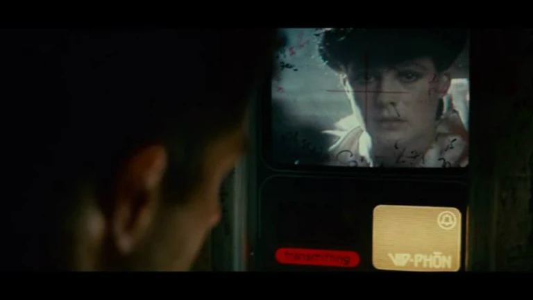 - Las videollamadas, que nosotros hacemos con unos teléfonos inteligentes superchulos y con aplicaciones que facilitan gran resolución (quién no ha hecho un Skype o una videollamada por watssap) y que en la peli el cazarecompensas Deckar (Harrison Foprd) hacían desde un enorme aparato bastante feo, con una resolución basjísima y algo cara.