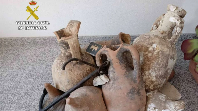 La Guardia Civil, con la colaboración de la Consellería de Educación, Cultura y Deporte de la Comunidad Valenciana, ha recuperado 13 ánforas romanas posiblemente del siglo I, así como un ancla metálica del XVIII en una tienda de productos pesqueros congelados.