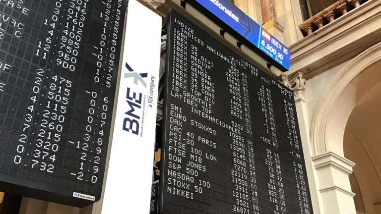 Vista de las pantallas que muestran la evolución del IBEX 35