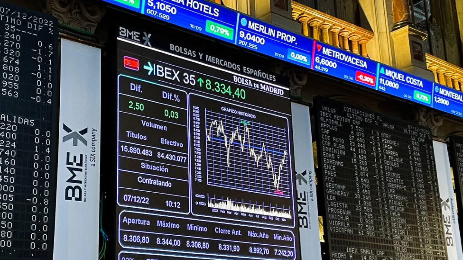 El índice Ibex 35 termina la sesión del miércoles en 9.294 puntos, con una subida del 0,22 por ciento. Es un nivel que no se veía desde comienzos del año 2020. Han tirado del mercado las acereras, las eléctricas, Telefónica, IAG e Inditex. Han flojeado Repsol -que publicará resultados mañana-y casi todos los bancos. La estrella ha sido Naturgy, que ha publicado un beneficio de 1.649 millones de euros en el ejercicio 2002. Es un 35,8 por ciento superior al de un año antes. Las acciones de la antigua Gas Natural apenas han reaccionado al dato.