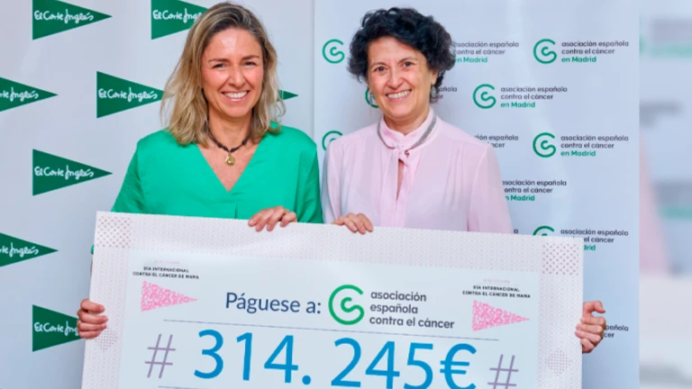 El Corte Inglés entrega esta cantidad a la Asociación Española Contra el Cáncer (AECC) para continuar financiando en su totalidad el quinto proyecto de investigación contra el cáncer de mama y el dinero procede de lo recaudado en la campaña contra el cáncer de mama de 2024 que cada año organiza la entidad en el mes de octubre.