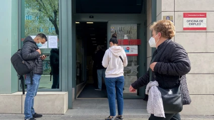Varias personas esperan en las inmediaciones de una oficina del SEPE