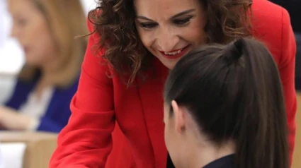 La ministra de Hacienda en funciones María Jesús Montero acaricia al bebé de Irene Montero