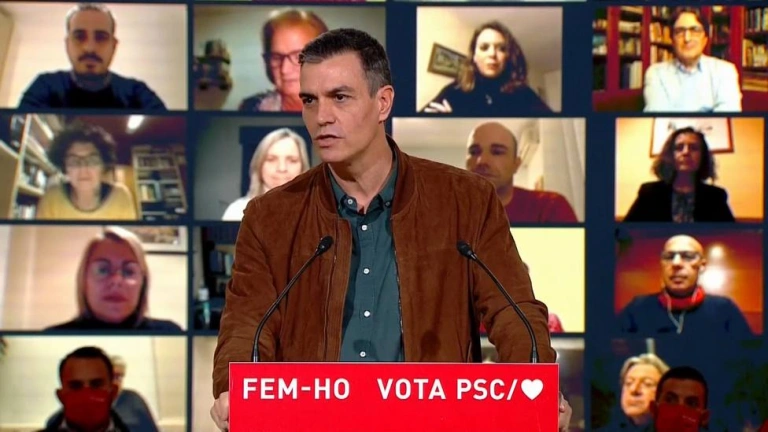 El presidente del Gobierno ha pedido el voto para el candidato del PSC, Salvador Illa, para "romper el cordón sanitario" que los independentistas han puesto a los socialistas