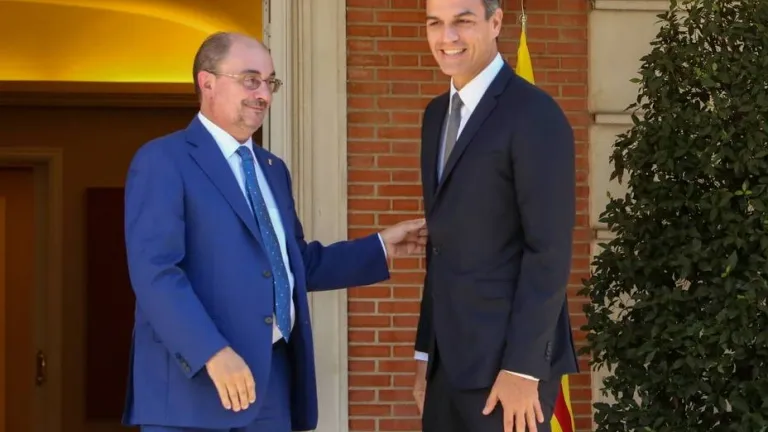 El presidente del Gobierno, Pedro Sanchez, se reune con el presidente de Aragon, Javier Lamban, en el complejo de La Moncloa