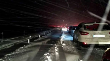 En esta autopista, en la confluencia con la A-61 en Segovia, se atraviesa una situación complicada al haber quedado atrapados gran cantidad de vehículos que no disponen de cadenas y que se han visto sorprendidos por el temporal.
