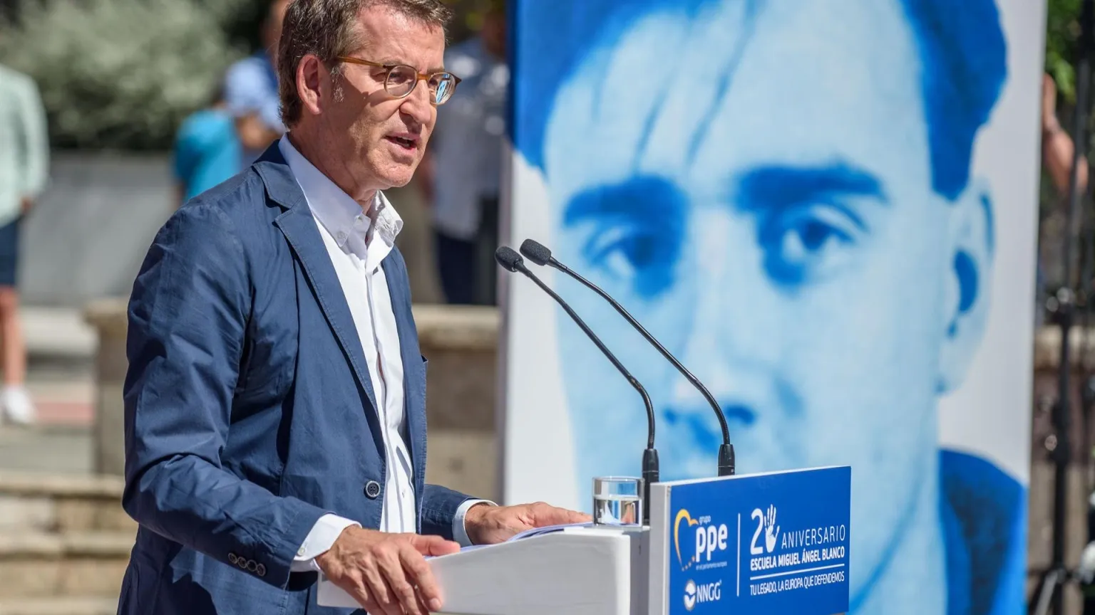 Feijóo se compromete en Ermua a derogar la Ley de Memoria Democrática cuando llegue al Gobierno