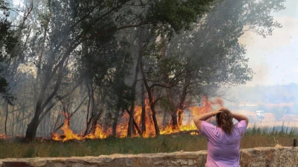La imagen de un hombre huyendo del fuego con su ropa prendida tras verse cercado por las llamas cuando hacía un cortafuegos con un tractor con pala excavadora a las afueras de Tábara se ha convertido en un icono de la peligrosidad del incendio forestal de Losacio (Zamora).