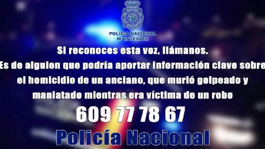 La Policía Nacional solicita la colaboración ciudadana para esclarecer el homicidio de un anciano ocurrido en Santander. Los hechos ocurrieron el pasado año cuando un hombre de 81 años de edad falleció asfixiado en un local de la ciudad cántabra tras ser abandonado después de ser víctima de un asalto. Una llamada anónima realizada al día siguiente desde una cabina de Vitoria, informaba de lo sucedido a la Cruz Roja de Madrid. Los investigadores han habilitado el teléfono 609 777 867 para que cualquier ciudadano aporte datos de interés sobre esa voz y poder identificar al comunicante.