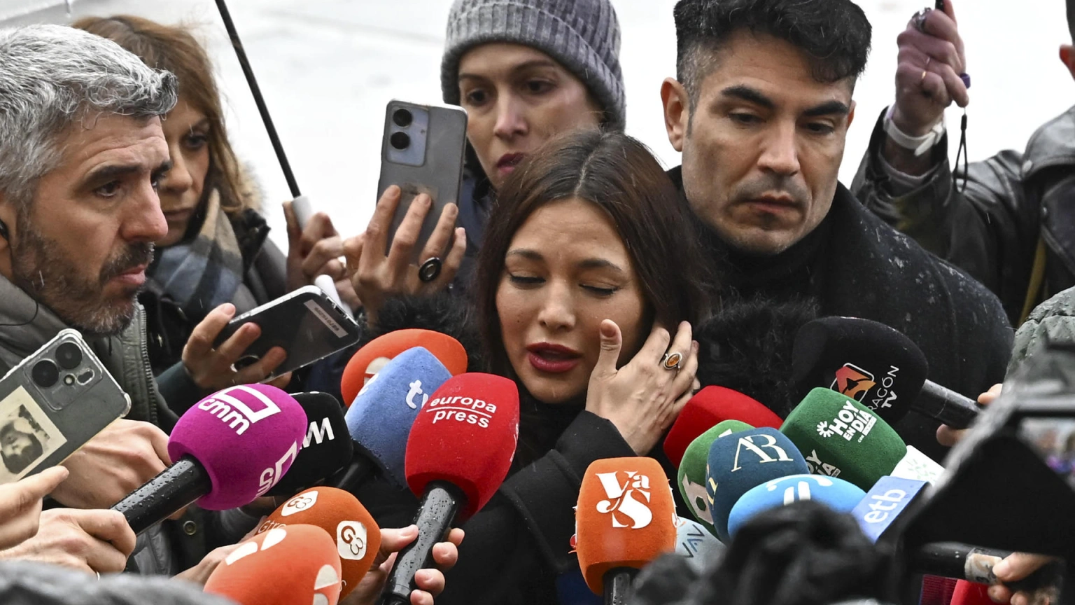 La actriz Elisa Mouliáa realiza declaraciones a la prensa este martes a las puertas de los Juzgados de Plaza de Castilla de Madrid