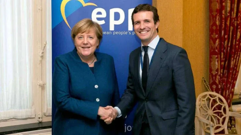 Preguntado sobre si pedirá a Merkel que sea dura con las cuentas españolas en Bruselas, Casado respondió negativamente: "¿Cómo voy a pedir a una socia de partido que sea dura con mi país y desde el partido que ha hecho más por España?".