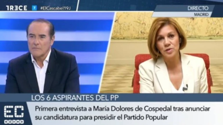 Antes de ser entrevistada en 'Herrera en COPE', la secretaria general y aspirante a liderar el Partido Popular, María Dolores de Cospedal, ha estado en 'El Cascabel' de TRECE, donde ha defendido su experiencia en política y en la formación: "Con independencia de que yo haya cometido equivocaciones, cuando había que estar he cumplido y he defendido a mi partido".