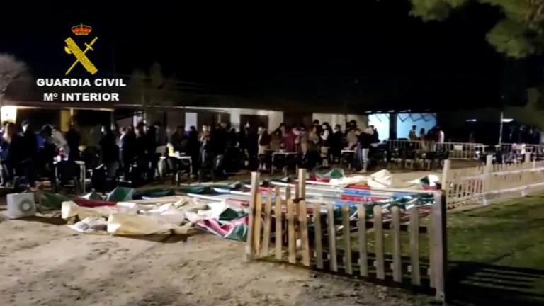 Tras acceder al interior de la finca, la Guardia Civil se encuentra con cientos de jóvenes sin mascarilla y sin respetar ninguna de las medidas de seguridad sanitaria. El promotor de la fiesta -que está siendo investigado junto con el propietario de la finca- había contratado a camareros que estaban sirviendo en las barras distribuidas por el interior del lugar.