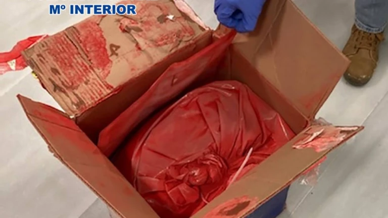 Con el avance de las pesquisas, los agentes interceptaron un paquete, procedente de Ecuador y cuyo destino final era Madrid, con 24.267 gramos de pintura roja en su interior. Tras aplicarle los reactivos comunes no se detectó ninguna droga, si bien al someterla a los procesos químicos oportunos se observó que contenía 3.255 gramos de cocaína.