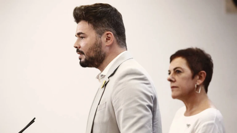 La portavoz de EH Bildu en el Congreso de los Diputados y el de ERC, Mertxe Aizpurúa y Gabriel Rufián