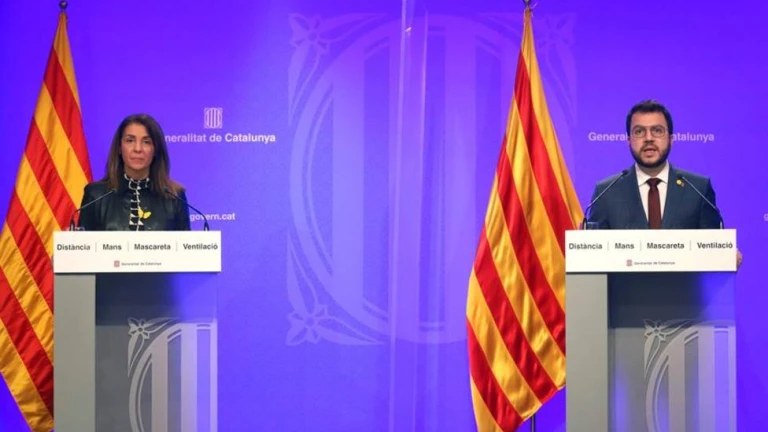 Pere Aragonés y Meritxell Budó en rueda de prensa