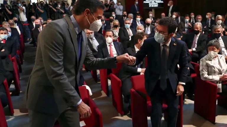 En La Moncloa se niegan a dudar de la buena voluntad de la contraparte independentista so pena de quedar colgados con su apuesta por el “reencuentro”. La sordina gubernamental alcanza el desplante de Pere Aragonés a Felipe VI en la cena inaugural del Cercle d´Economía de este miércoles por la noche. “ERC está amoldándose desde la presidencia a las nuevas circunstancias y sus socios de JxCAT no se lo ponen fácil”. Esa es la coartada oficial desplegada desde el Gobierno para disculpar al presidente de la Generalidad de Cataluña.