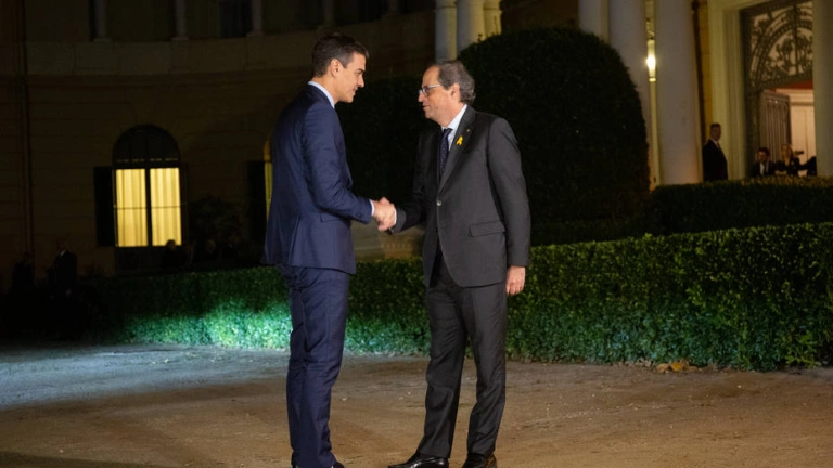 El presidente del Gobierno Pedro Sánchez saluda Quim Torra
