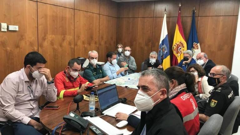El ministro ha participado también en la reunión diaria del Plan de Emergencias Volcánicas de Canarias (PEVOLCA), junto al consejero de Administraciones Públicas, Justicia y Seguridad del Gobierno de Canarias, Julio Pérez, y el presidente del Cabildo de La Palma, Mariano Hernández.