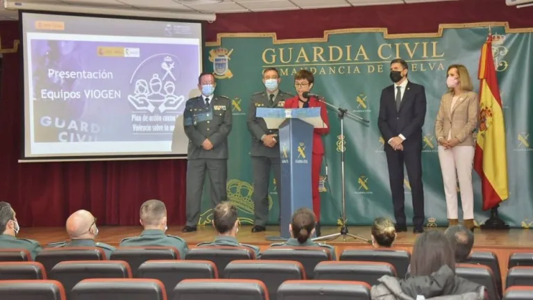 La directora general, María Gámez, presenta en Huelva la creación de los equipos VIOGÉN, 233 en todo el territorio nacional, constituidos por 641 guardias civiles, que son el primer escalón de respuesta ante las agresiones machistas