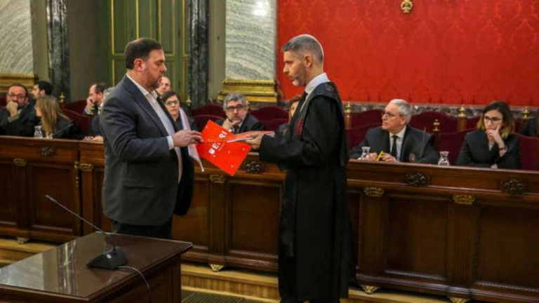 Junqueras se ha podido despedir a través de la voz de Gómez del Moral, que ha leído una carta escrita desde su celda de la cárcel de Soto del Real (Madrid).