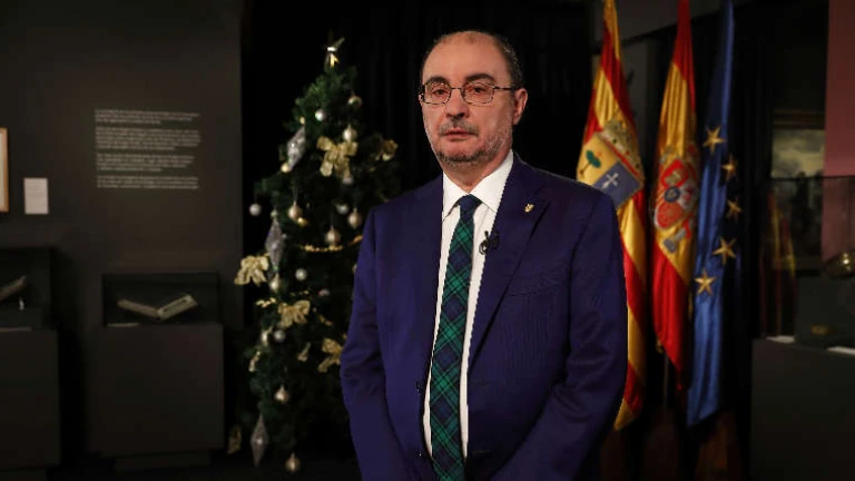 Lambán ha dirigido su mensaje de Año Nuevo a los aragoneses desde la Sala de la Corona del edificio Pignatelli, donde reside la exposición sobre los “Panteones reales de Aragón”, lugares emblemáticos de la historia como Reino y como Corona de Aragón, que combate "a la mentira" en que basa su existencia el independentismo que, a su juicio, “intenta borrar a Aragón de la historia”.