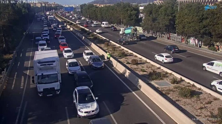 Ya en Barcelona, los problemas se localizan en la AP-7 en la Roca del Vallés; en la C-17 en La Garriga; en la A-2 en Castellbisbal y especialmente en Abrera con hasta once kilómetros por un accidente; y en la C-55 en Castellgali. Y en Valencia, el tráfico es difícil en la A-3 en Cheste.