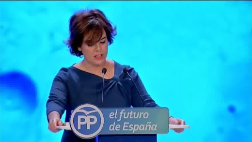 Después, en una de las sorpresas del discurso, Santamaría ha sacado un abanico decorado con la bandera de España para reivindicar que quiere un partido abierto. "¿Dónde están nuestros principios y valores? En cada una de las varillas del abanico, que siguen siendo firmes. Y así es como se ganan elecciones".