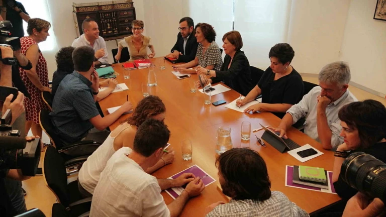 El PSN ha entregado este lunes a Geroa Bai, Podemos e Izquierda-Ezkerra una propuesta de programa de gobierno en la reunión que han mantenido para negociar la conformación del nuevo Ejecutivo, un encuentro que se ha prolongado media hora y del que los socialistas han salido "optimistas" en poder llegar a un acuerdo.