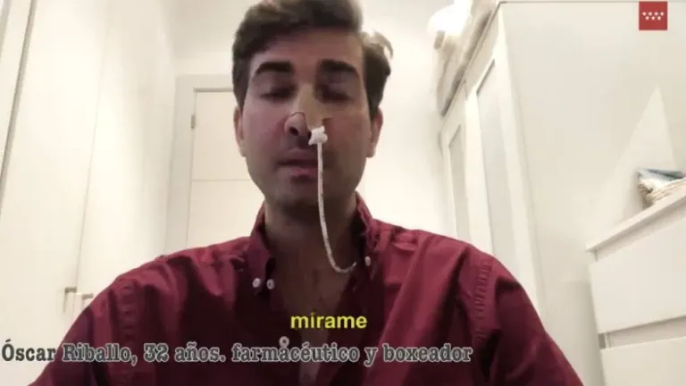 El último de los protagonistas del vídeo es Óscar Riballo, un farmacéutico y boxeador de 32 años que sufrió la covid-19 y arrastra graves secuelas: "Y si los datos no te convencen, mírame; la covid casi me mata, esta es su huella".