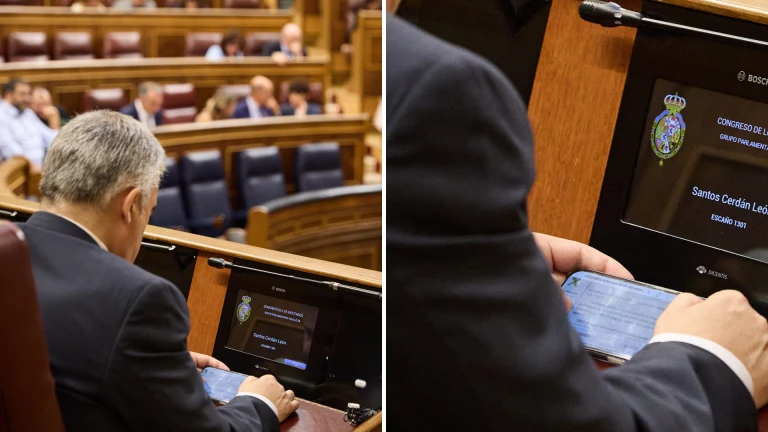 Poco después se pudo ver a Cerdán en su escaño consultando el documento y las informaciones relativas al mismo desde su escaño, al lado de su mano derecha en la secretaría de Organización del PSOE, Juan Francisco Serrano.