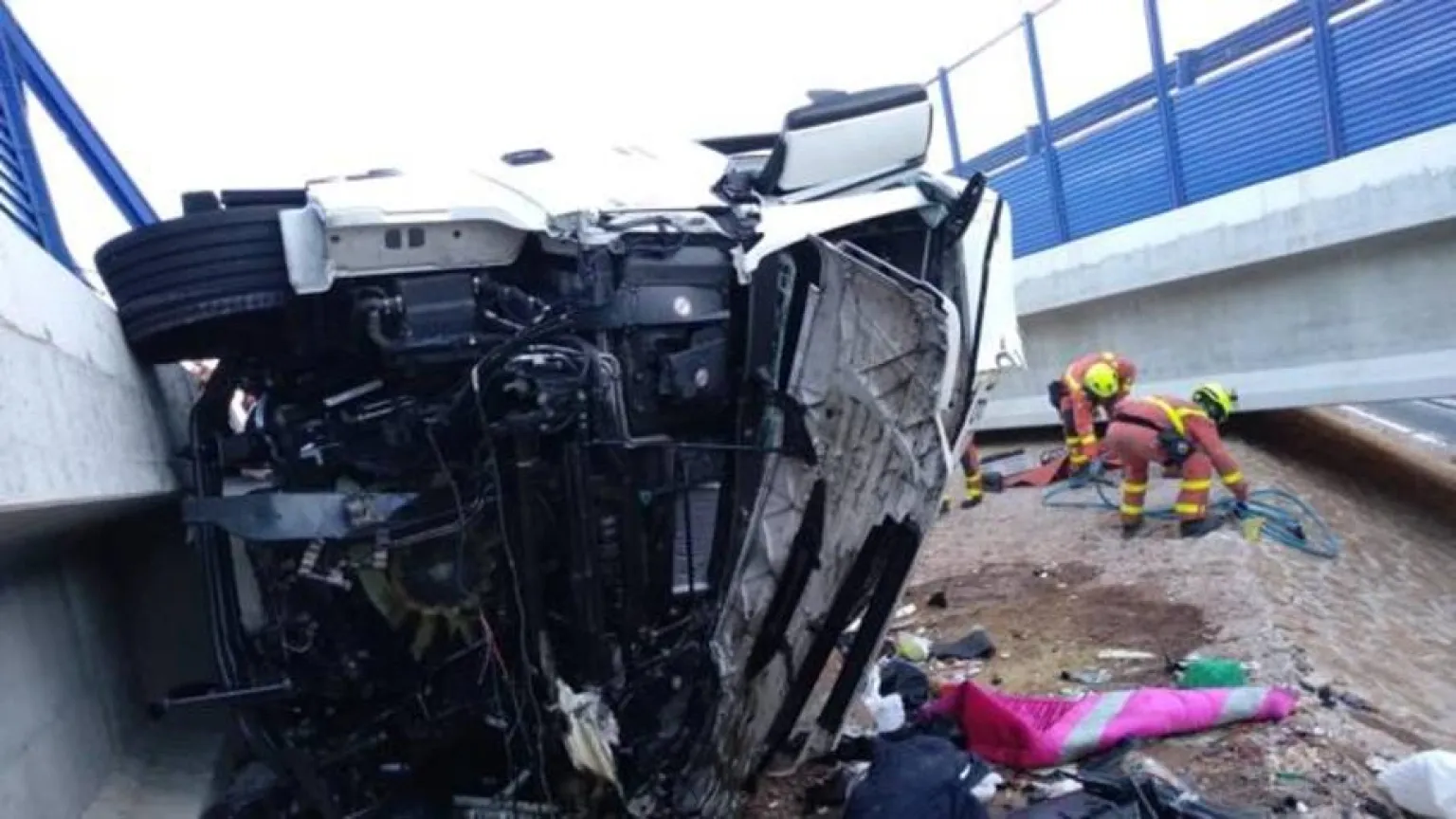 Un fallecido al volcar dos camiones por el viento en Valencia
