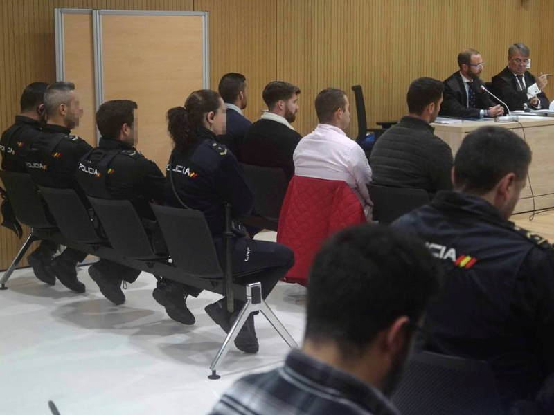 Los miembros de La Manada en la sala de la Audiencia de Córdoba durante el juicio acusados de abusar de una ch
