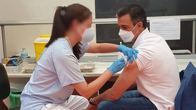 El presidente del Gobierno ha sido vacunado horas después de que en su intervención en la reunión del Cercle d'Economía anunciase que un Consejo de Ministros extraordinario aprobará el próximo jueves la eliminación de la obligatoriedad de las mascarillas en el exterior a partir del sábado 26 de junio.