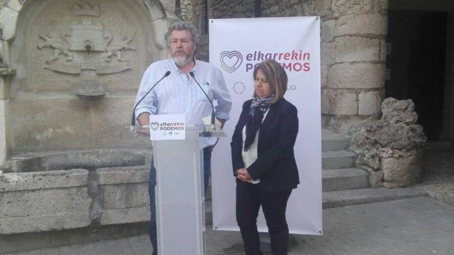 Los cabezas de lista de Elkarrekin Podemos por Álava para el Congreso, Juantxo López de Uralde, y para el Senado, Kontxi Palencia, han participado este lunes en un acto electoral en la capital delmunicipio del Condado de Treviño, integrado geográficamente en Álava pero que administrativamente pertenece a la provincia de Burgos.