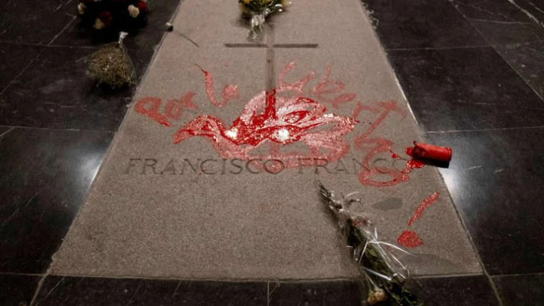 Profanan la tumba de Franco con pintadas rojas