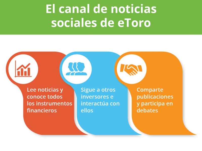Otras de las ventajas del canal de noticias sociales es que permite participar en debates. En consecuencia, puede ser una excelente herramienta para enseñar conocimientos y aprender de otros usuarios. Como en cualquier otra red social, es posible seguir a otros inversores e interactuar, por lo que puede ser útil para ampliar el círculo de conocidos que están interesados en las finanzas. Además, eToro envía notificaciones cuando sucede algún evento de relevancia, tal y como que otro trader haya compartido un artículo de interés.