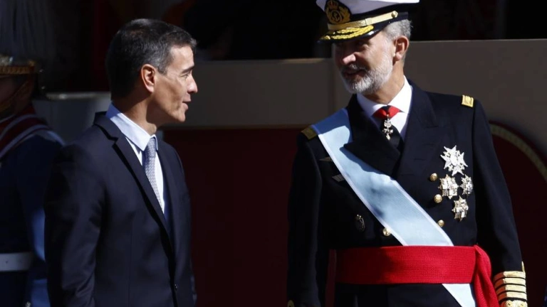 Sánchez, quien debía recibir a los Reyes a su llegada a la plaza de Lima de Madrid para presidir la parada militar, ha llegado un poco después de que lo hicieran estos, en contra de lo que marca el protocolo oficial.