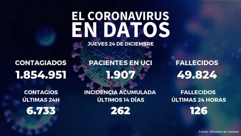 Según los datos de Sanidad, el número de fallecidos suma 49.824 desde el inicio de la pandemia tras notificarse 126 nuevas muertes.