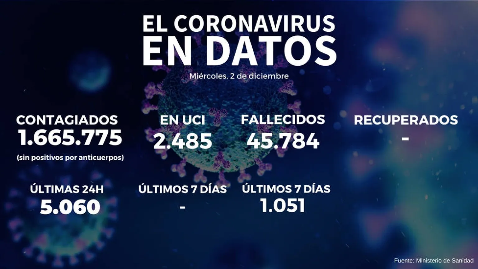 El Ministerio de Sanidad ha notificado este miércoles 9.331 nuevos positivos por coronavirus, que elevan la cifra total hasta 1.665.775, con una incidencia acumulada de 251,61 casos por cada 100.000 habitantes, mientras que el número de fallecidos suma 45.784, lo que supone 273 muertes más.