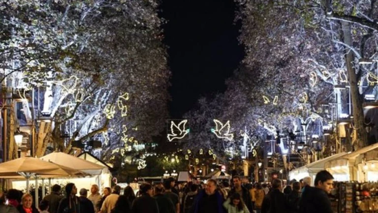 Foto de archivo de la Rambla de Barcelona con las luces de Navidad encendidas