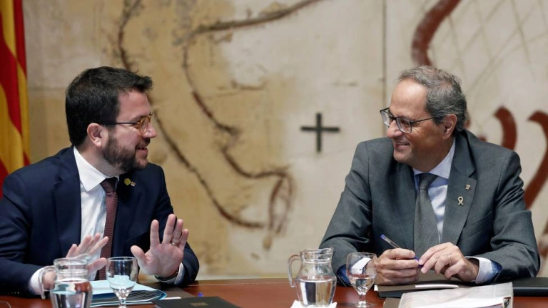 El presidente de la Generalitat, Quim Torra, junto a su vicepresidente y conseller de Economía, Pere Aragonés