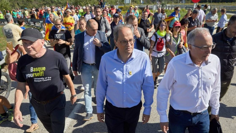 Torra ha explicado que ha acudido a una de las denominadas cinco "Marchas por la libertad" impulsadas por la ANC y Òmnium Cultural -que han arrancado esta mañana desde Girona, Vic, Berga, Tàrrega y Tarragona y que confluirán el viernes en Barcelona- con el fin de "dar apoyo a esta y a todas las manifestaciones que se están haciendo en Cataluña, contra la sentencia y en apoyo al derecho a la autodeterminación de los catalanes".