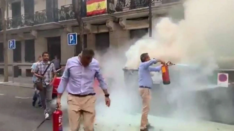 El candidato de Vox al Ayuntamiento de Madrid se ha visto obligado a coger un extintor y salir a la calle para evitar que el fuego se propagara