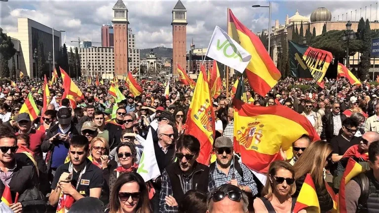 Miles de personas asisten este sábado a mediodía a la concentración de Vox en Barcelona, bajo el lema 'Cataluña por España' en la avenida Maria Cristina, en un acto que ha empezado a las 12.10 y en el que intervendrá el líder del partido, Santiago Abascal.