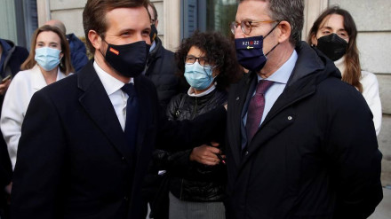 Cuatro mil personas se han manifestado frente a la sede del PP para apoyar a la presidenta madrileña: "Hemos votado Ayuso y queremos tener a Ayuso"
