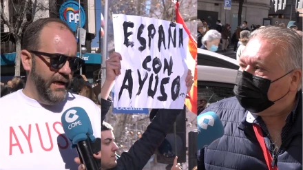 COPE se adentra en la concentración a favor de Ayuso: “Todo esto es gasolina para Sánchez y uranio para Vox”