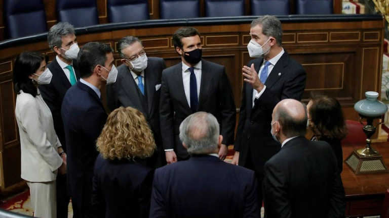 Enseguida, buena parte de los diputados presentes en el hemiciclo se han puesto en pie y ha aplaudido la referencia a esta efeméride, salvo las fuerzas independentistas y nacionalistas, en consonancia con su objetivo de acabar con el "régimen del 78" y con el 'plante' que este martes han realizado al Rey Felipe VI en el acto oficial del Congreso con motivo del aniversario.