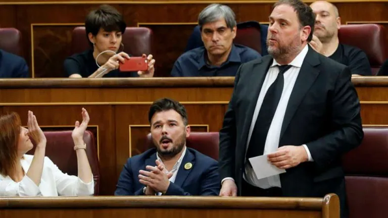 Los diputados independentistas han acatado este martes la Constitución "por imperativo legal" y por la libertad de los "presos políticos" entre los abucheos y los golpes en la mesa de varios diputados, sobre todo los de Vox, que han impedido que se escuchasen con claridad sus fórmulas. "Lo prometo por imperativo legal con lealtad al mandato democrático del 1 de octubre y del pueblo de Cataluña", han sido las palabras que han utilizado los diputados de ERC al tomar posesión de sus escaños. "Por la libertad de los presos y exiliados políticos, por la República Catalana, sí prometo", ha indicado por su parte el que ejercerá previsiblemente como portavoz, Gabriel Rufián.
